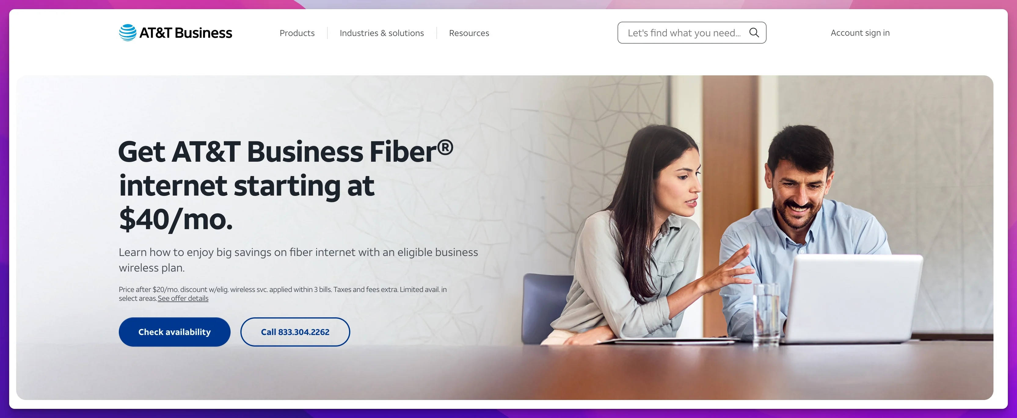 Wireless bundle pricing requires an eligible AT&T Business wireless plan. Taxes and fees not included.