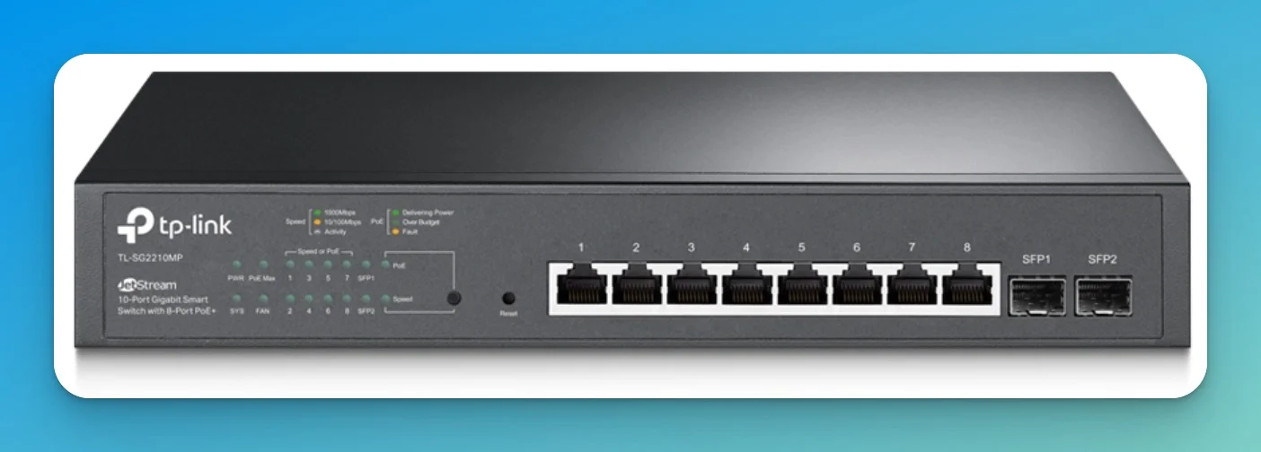 | Switch | TL-SG2210MP | ~$195 | 8-port Gigabit PoE+ |