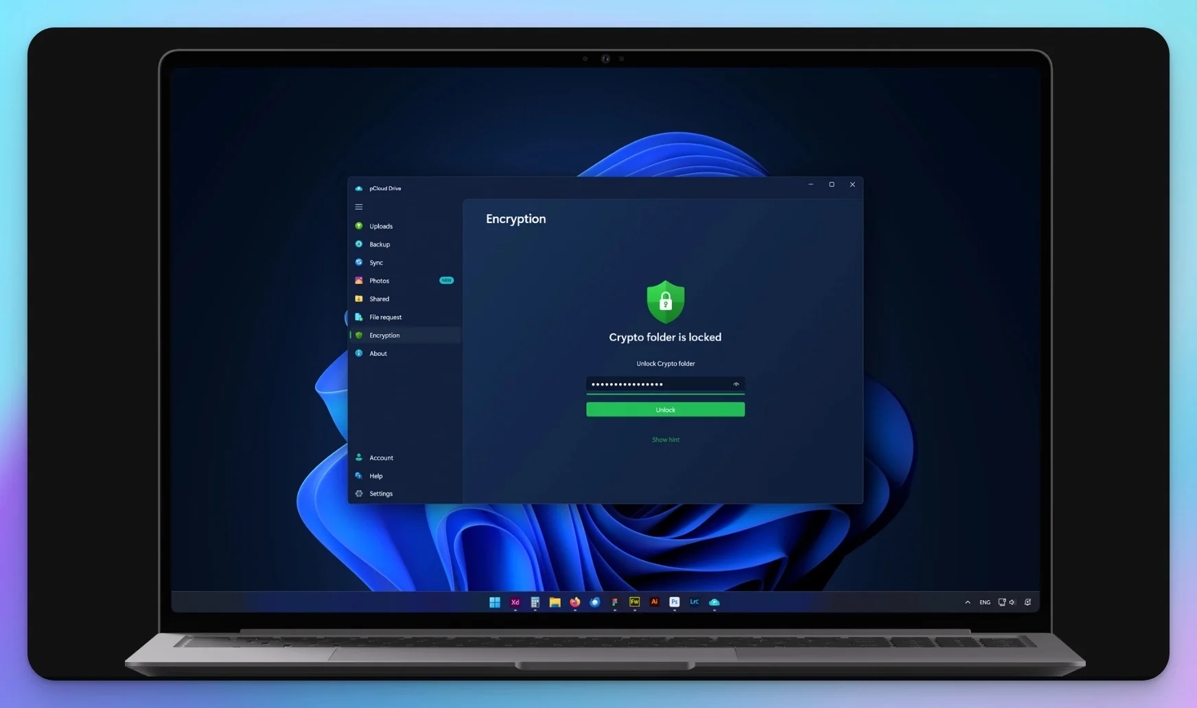 - Files are encrypted on your device before upload