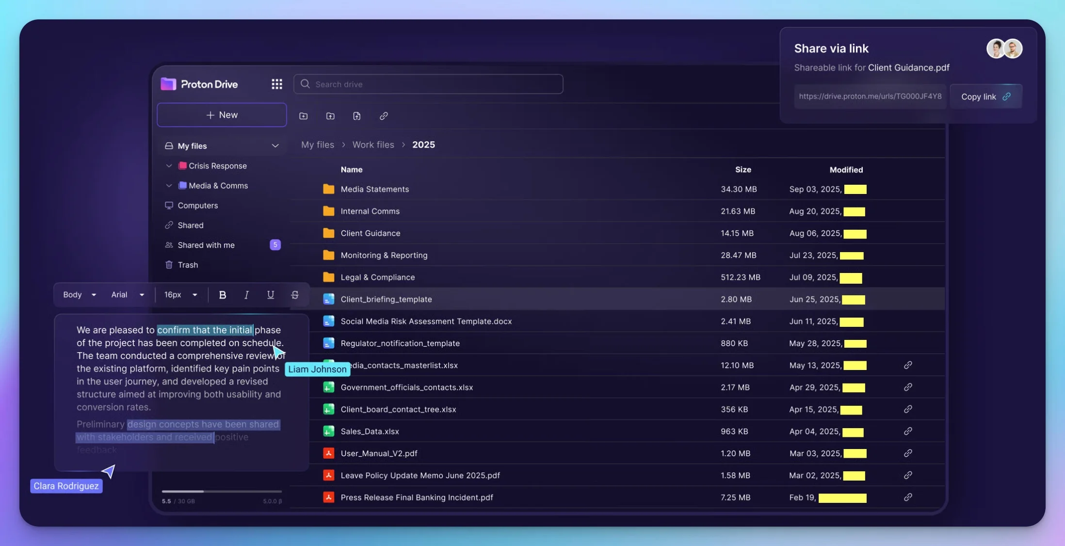 Tresorit's granular permissions let you specify exactly who can view, edit, download, or share each file—essential when managing sensitive client documents across multiple parties.