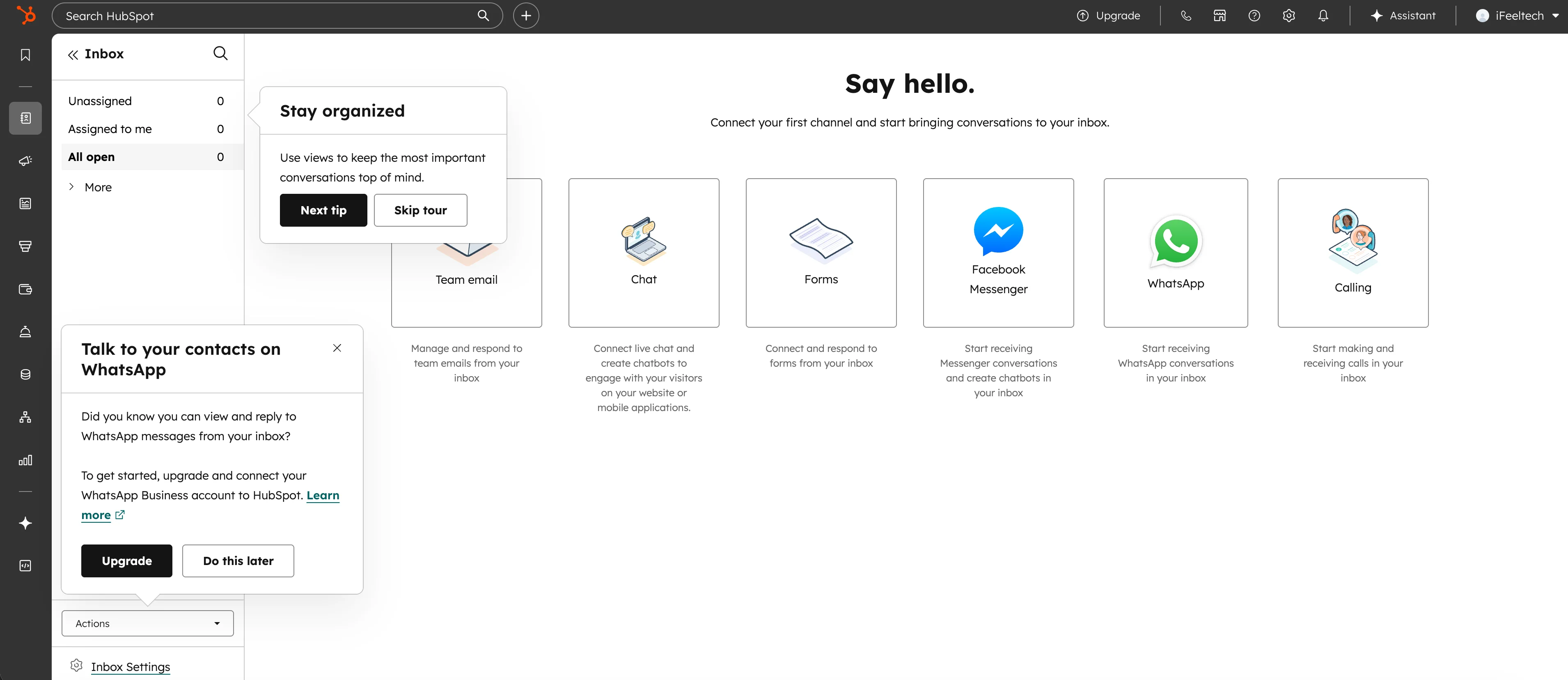 The practical advice for new accounts: configure only what your team will use in the first 30 days. HubSpot's sidebar navigation surfaces far more features than most businesses need immediately. Over-configuration is the enemy of CRM adoption — a simple pipeline your team logs into daily beats a sophisticated one nobody opens.