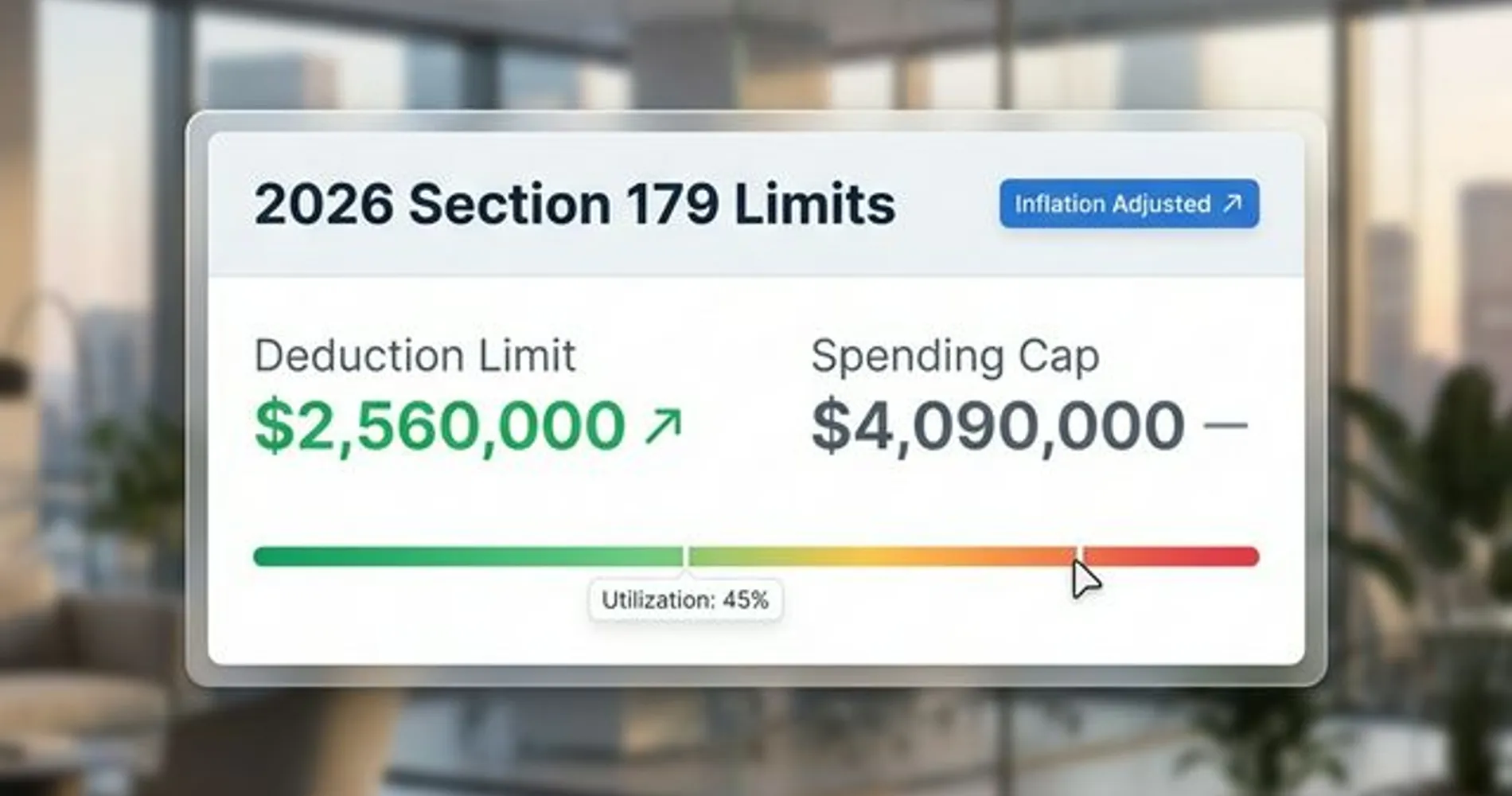 The Section 179 deduction limit for 2026 effectively increases to $2,560,000, with a spending cap of $4,090,000 before the deduction phases out.