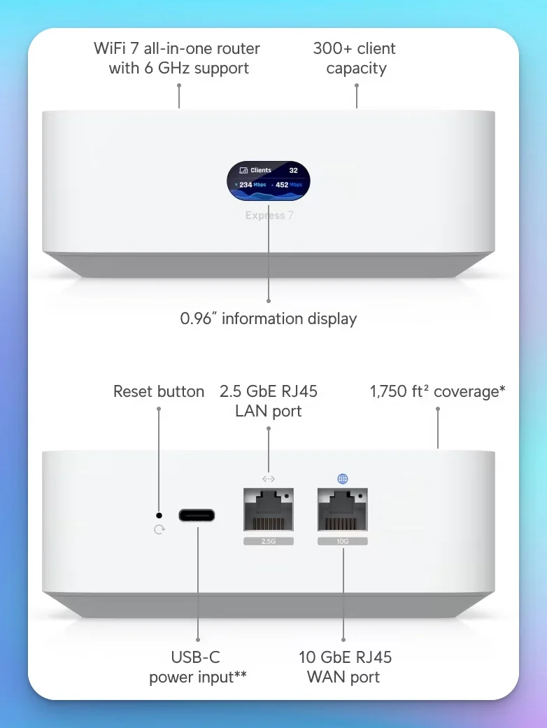 UniFi Express 7 - Compact, fanless design with minimal port configuration